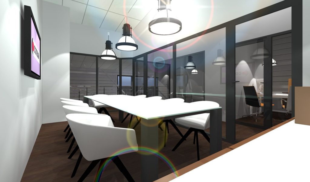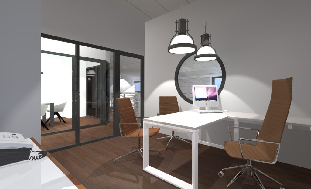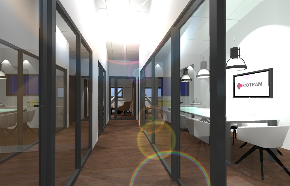 Un hall vitré en double hauteur marque l’entrée et structure l’accueil. Direction commerciale au rez-de-chaussée, direction générale à l’étage. Bardage en bac acier isolé prépeint, vitrages phoniques teinte bronze avec stores intégrés. Un projet fonctionnel et rationnel, au service d’un cadre de travail confortable et cohérent.