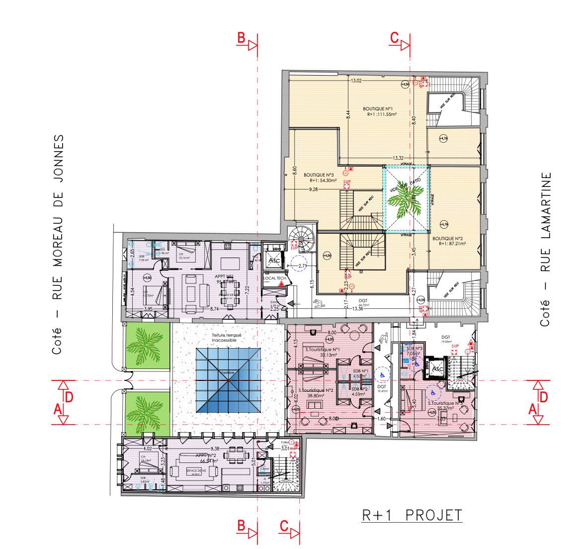 Programme : mini-centre commercial, restauration, hôtellerie, appartements de standing et bureaux partagés en dernier étage.