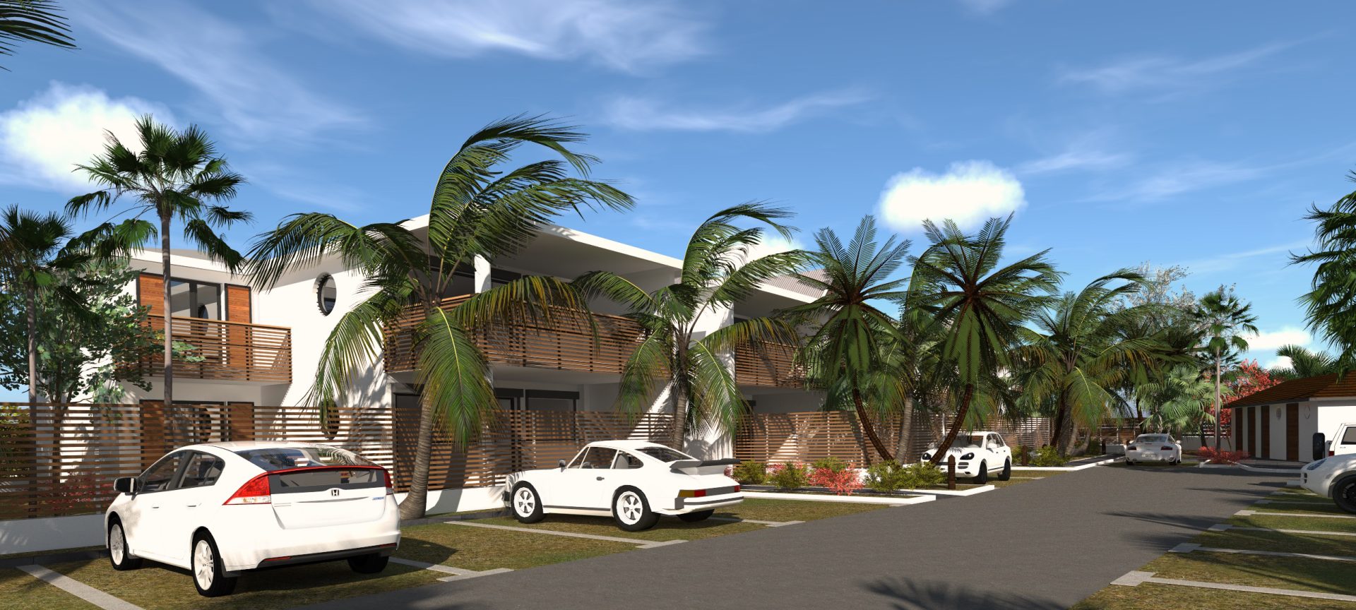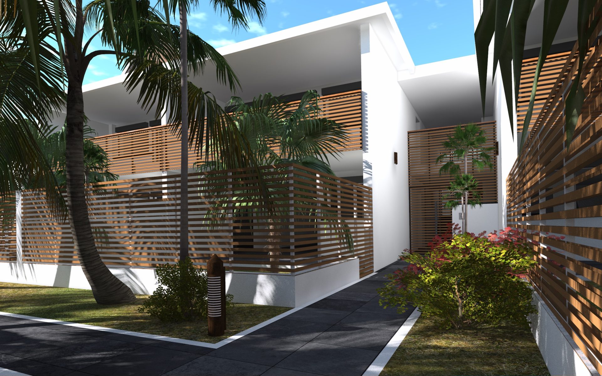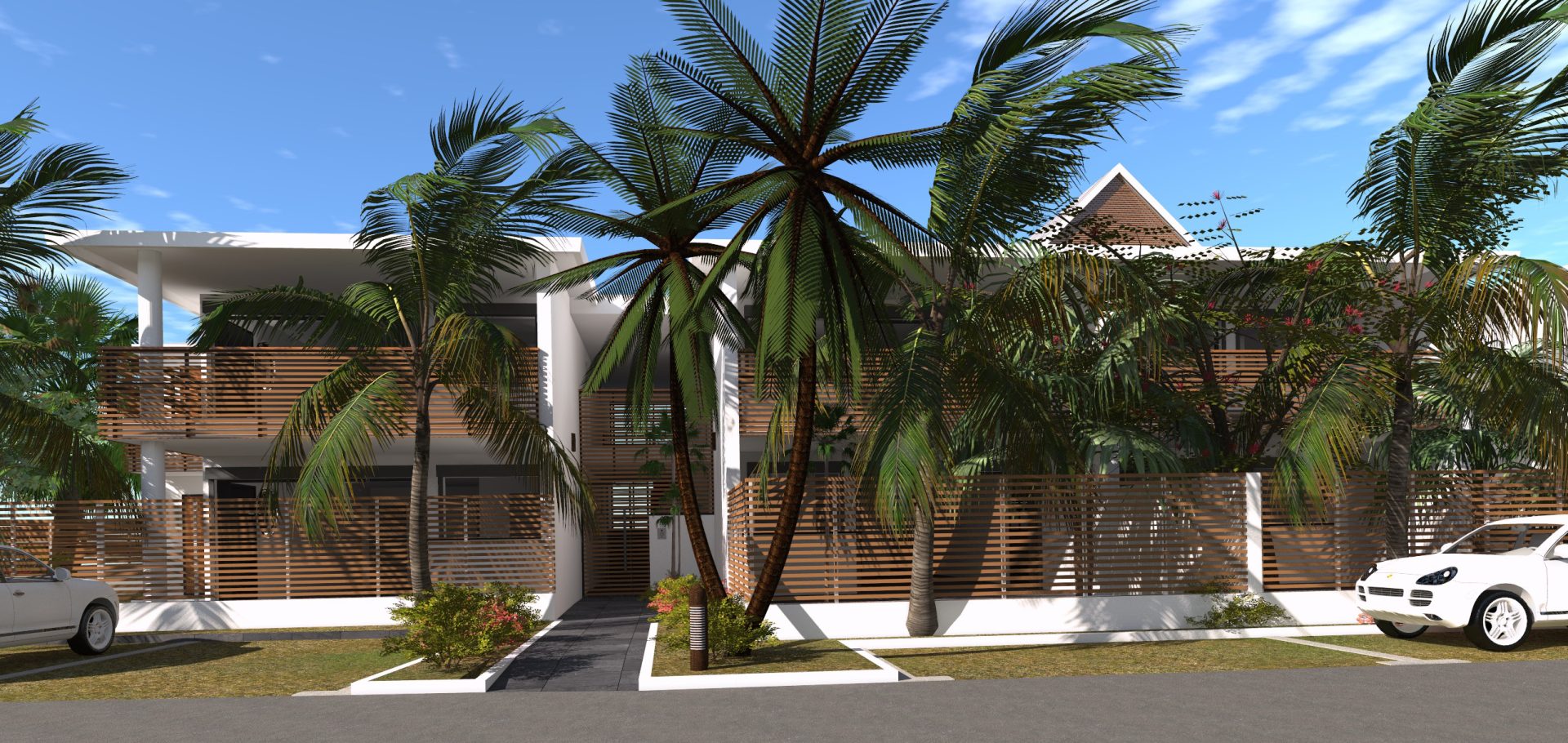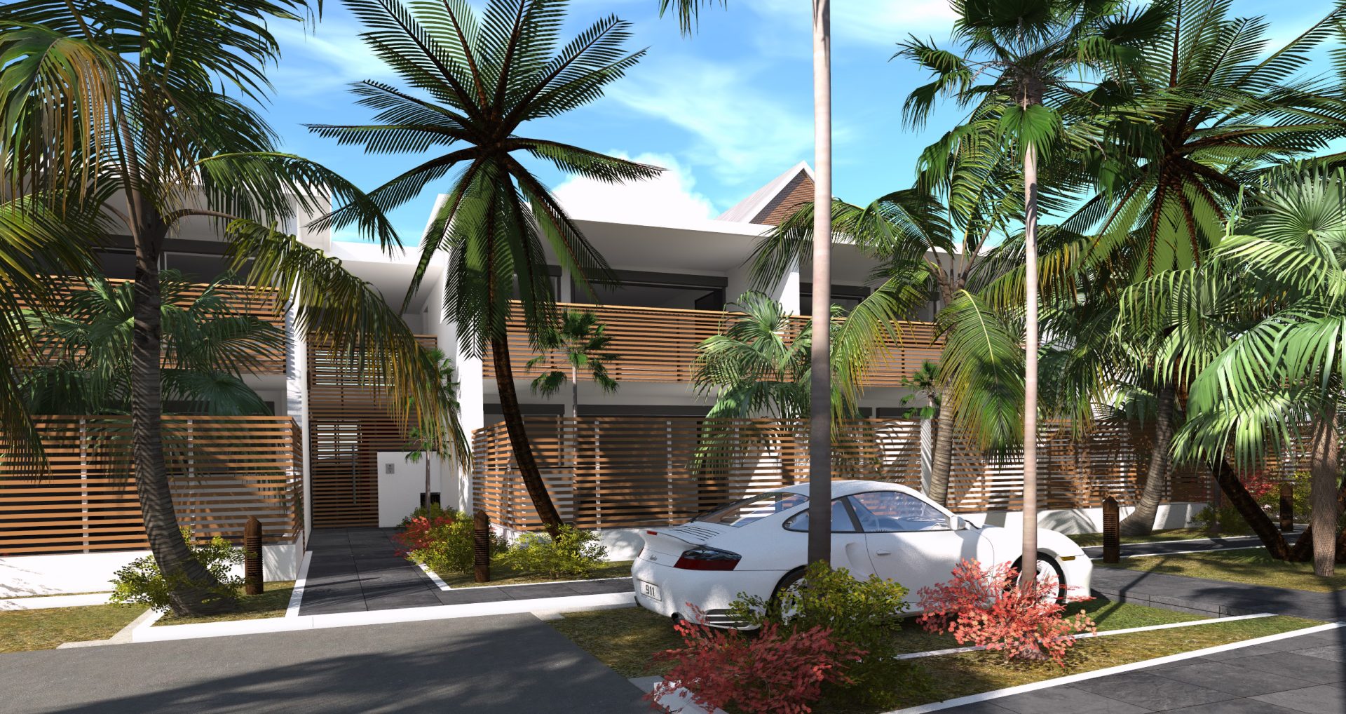 Le projet explore une écriture architecturale ancrée dans le contexte tropical, articulée autour de la porosité des espaces et de la continuité intérieur–extérieur. Les logements du rez-de-chaussée s’ouvrent sur des jardins privatifs, tandis que les niveaux supérieurs privilégient les vues et les dispositifs de ventilation naturelle.