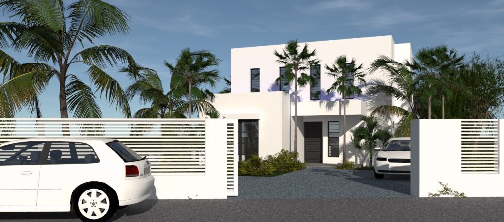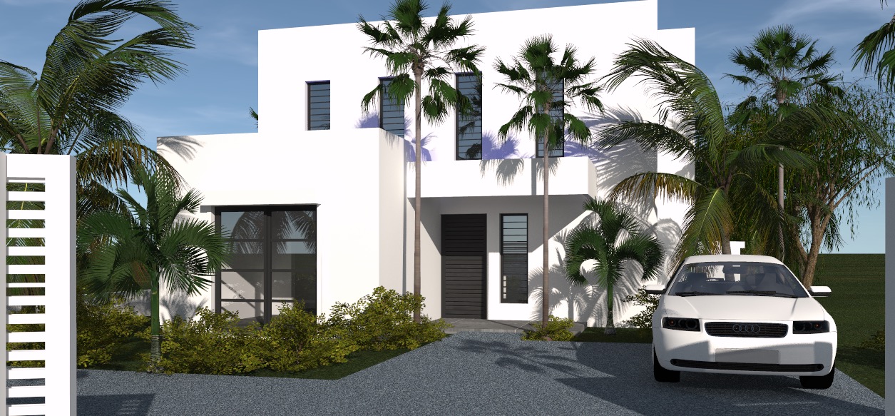 Située dans un quartier urbain de Fort-de-France, cette maison de ville contemporaine se distingue par une architecture sobre et élégante. Composée de volumes géométriques simples, entièrement vêtus de blanc, la maison affirme une esthétique moderne qui capte et reflète la lumière tropicale.